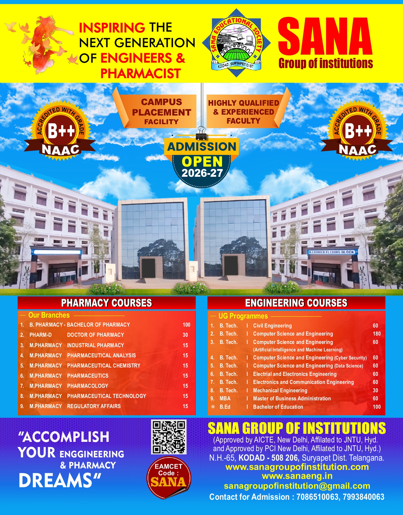 Located in the heart of Kodad, Sana Engineering College offers easy access and a welcoming campus environment.